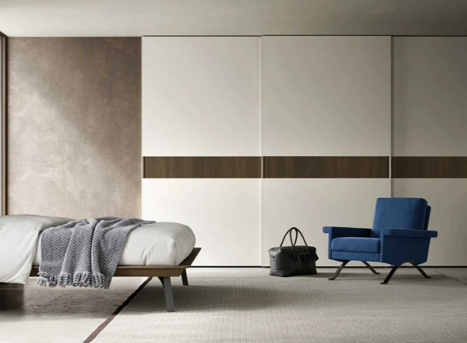 Gli Armadi e le cabine armadio con ante scorrevoli devono ammobiliare la zona notte assicurandoti una perfetta ottimizzazione degli spazi e un'esclusiva ricerca stilistica. La zona del riposo è dedicata al relax, deve dunque risultare ben arredata e completa di mobili e complementi capaci di creare un'ambientazione sempre rasserenante. Contattaci per informazioni e preventivi e potrai completare la zona del riposo che hai sempre sognato grazie ad una ricca varietà di mobili contenitori design come questo guardaroba in laccato opaco nell'immagine. Armadio con ante scorrevoli Meridian di Sangiacomo: compila il form, contattaci e dai vita alla stanza del relax come l'hai sempre immaginata.