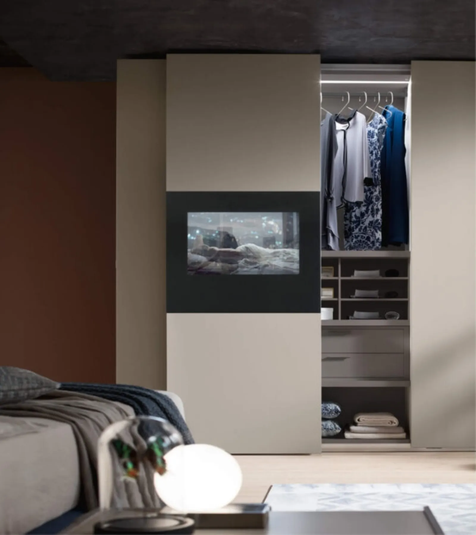 Armadio con TV Wallblog3 di Maronese: compila il form per ricevere informazioni di ogni tipo e consigli per allestire la camera che hai sempre voluto. Gli Armadi a muro con ante scorrevoli sono componenti immancabili nella camera da letto, per renderla arredata con gusto, pratica e completa di tutto. Contattaci e scopri di più sulla nostra linea di Arredamento Casa: sarai in grado di ultimare la camera da letto potendo usufruire di una diversificata gamma di mobili contenitori moderni, come l'armadio in melaminico nell'immagine.