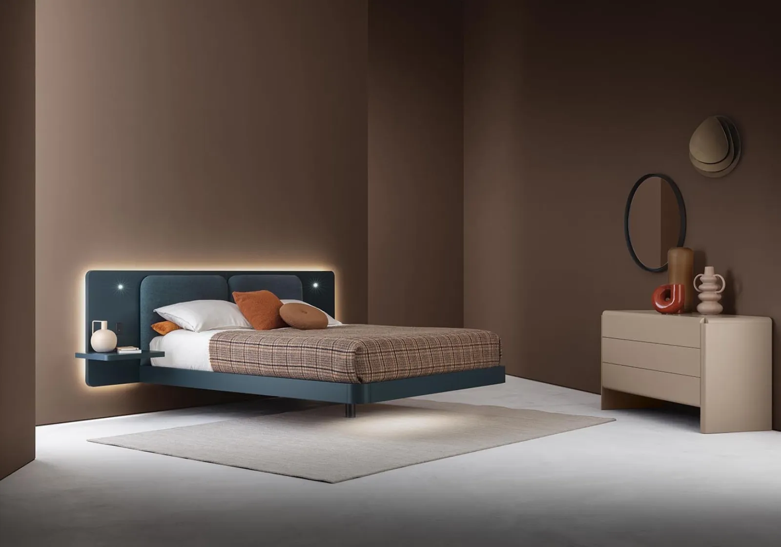 Durante la scelta di un buon modello di letto, valuta con attenzione le sue dimensioni, le finiture, la forma e il suo stile rispetto ai restanti pezzi d'arredo. Se vuoi una soluzione in laccato opaco, il modello presente in foto è contraddistinto da materiali pregiati e forme decise, che invitano a trascorrere un sonno tranquillo e ristoratore. I Letti matrimoniali con testiera del marchio, leader nella realizzazione di Arredamento Casa per la zona del riposo, sono progettati per essere abbinati a mobili ed elementi accessori di ogni tipo, come armadi e comodini, abat jour e piantane. Scegli cromie e finiture e realizza il tuo progetto d’arredo nella zona notte, progettandola proprio come l'avevi sognata.