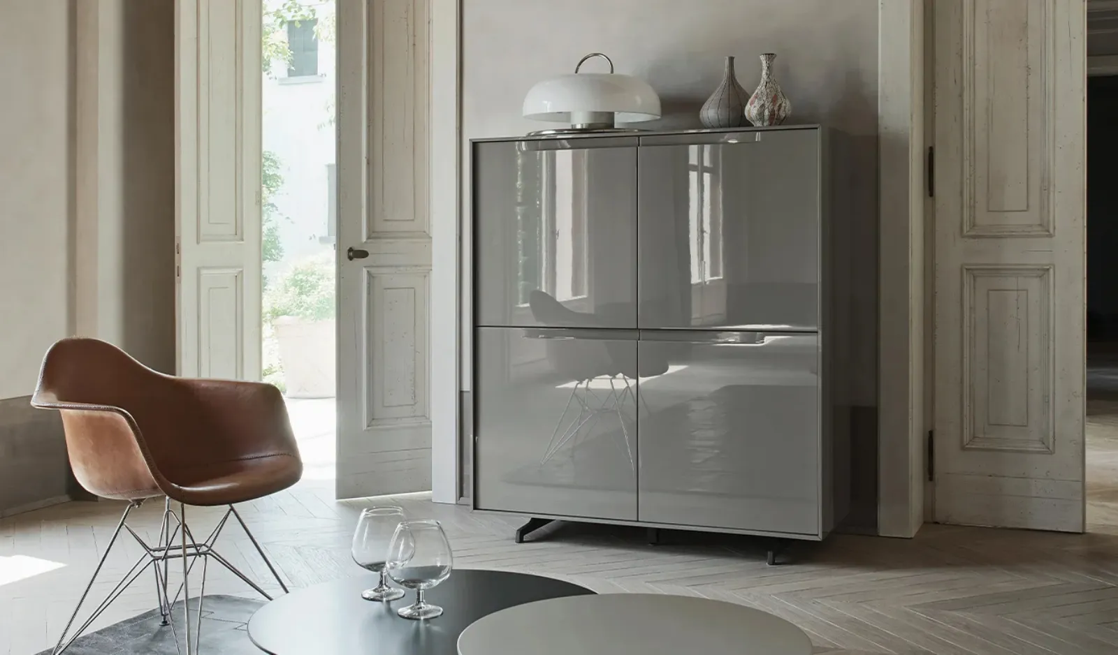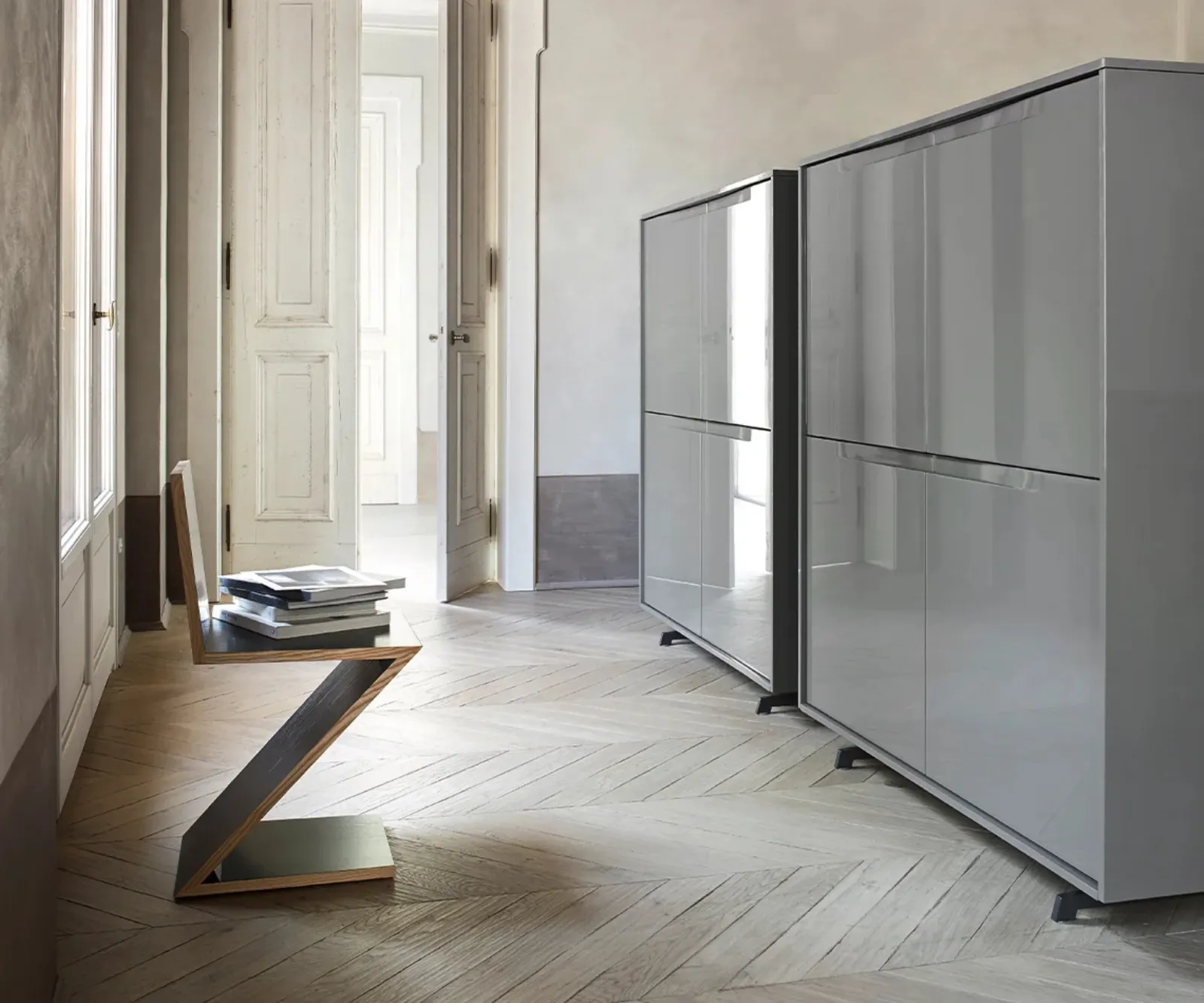 Se cerchi un modello di madia salvaspazio, scopri in negozio una ricca gamma di Arredamento Casa dei migliori brand e contattaci per info e preventivi. Le Madie moderne, tra cui il modello visibile in foto, valorizzano il soggiorno o la zona pranzo grazie a linee ben studiate e grandi doti contenitive. Se sei un appassionato di arredamento e sei sempre aggiornato riguardo l'evoluzione del design nel settore, il nostro centro espositivo è il luogo ideale per te. La Madia Vela 03 di Sangiacomo nell'immagine in laccato lucido risolve le più personali necessità di spazio e stile, arredando il living con praticità e un design unico.