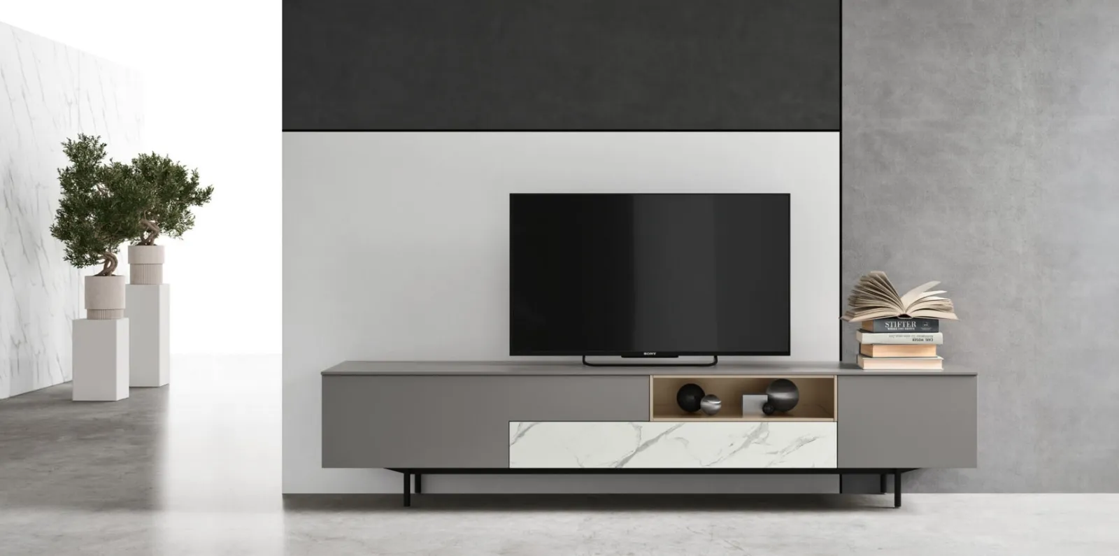 I Mobili Porta Tv, se scelti con cura, servono per ultimare il tuo soggiorno fungendo da plurifunzionale piano d’appoggio per oggettistica varia, per la TV e quant'altro. Nel living servono arredi che ci accompagnino nella vita in casa, facilitando i gesti che facciamo nel quotidiano e creando peculiari atmosfere. Il modello in foto fa parte della linea di Mobili Porta Tv moderni in melaminico di Maronese: in negozio troverai solo le offerte più belle in commercio. Utili e di alto valore estetico, i nostri Mobili Porta Tv Maronese in melaminico per ambienti moderni sapranno ottimizzare gli spazi esaltandone la bellezza.