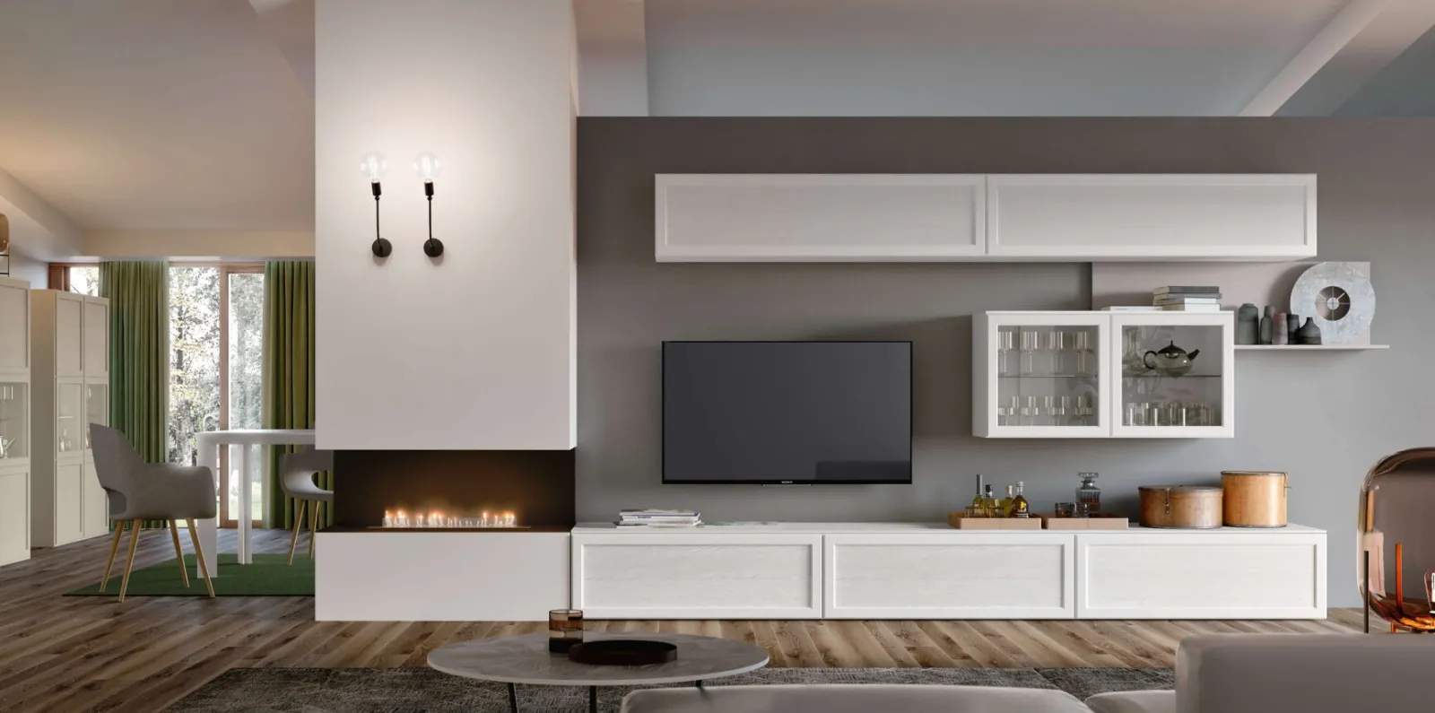 I mobili soggiorno in melaminico dalle linee classiche come il modello nella fotografia sono veramente versatili e capaci di allestire il soggiorno valorizzando ogni angolo. Dato che il soggiorno deve essere uno spazio funzionale e bello a vedersi, sono necessari alcuni arredi belli e funzionali come le Pareti Attrezzate. Lasciati stuzzicare da un ricco catalogo di arredi per la zona giorno e troverai la parete attrezzata che fa per te. Maronese produce innovativi modelli di mobili soggiorno, diversi per stile e forme, finiture e elementi: scopri nel nostro showroom l'Arredamento Casa dei migliori brand.