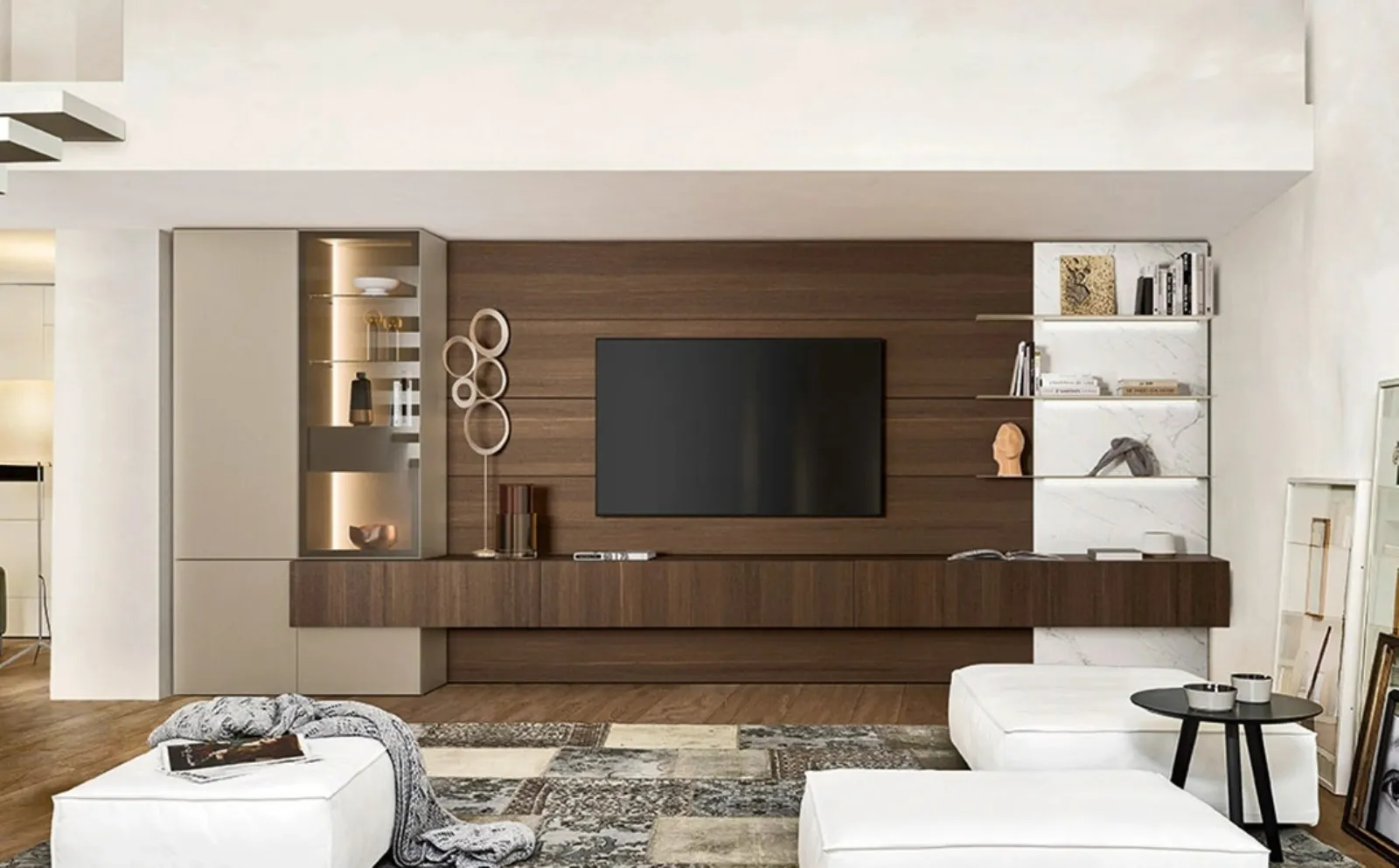 Le Pareti Attrezzate hanno conquistato un posto di primo piano nella zona giorno delle nostre case: sono mobili plurifunzionali e salvaspazio sempre realizzabili su misura per te. Per informazioni e preventivi sulla Parete Attrezzata Lampo 004 di Sangiacomo nella fotografia contattaci! Il modello proposto è realizzato in legno, ma grazie ad una vasta scelta di texture, tonalità e forme, potrà adattarsi a stili di ogni genere. Attraverso un gioco dinamico di accostamenti fra accessori a giorno o vani chiusi, le Pareti Attrezzate moderne arredano il living valorizzando ogni spazio.