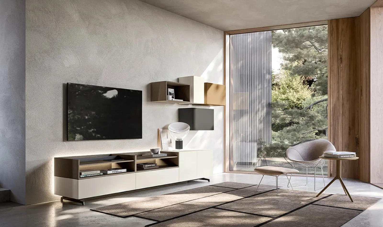 I mobili soggiorno in laccato opaco dalle linee moderne come il modello nella fotografia sono veramente eclettici e capaci di ammobiliare il soggiorno valorizzando ogni angolo. Sangiacomo offre a catalogo inediti modelli di mobili soggiorno, diversi per stile e conformazioni, texture e componenti: scopri in negozio l'Arredamento Casa dei migliori produttori. Lasciati ispirare da un ricco catalogo di arredi per la zona giorno e troverai la parete attrezzata che fa per te. Dato che il soggiorno deve essere uno spazio funzionale e bello da vedere, sono molto utili alcuni arredi belli e funzionali come le Pareti Attrezzate.