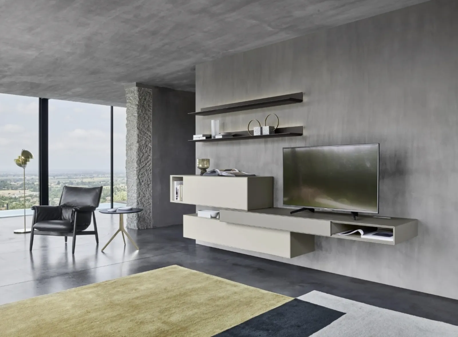 Sangiacomo offre a catalogo innovativi modelli di mobili soggiorno, diversi per stile e forme, finiture e elementi: scopri in negozio l'Arredamento Casa delle migliori marche. I mobili soggiorno in laccato opaco dalle linee moderne come il modello nella fotografia sono veramente versatili e capaci di allestire la zona giorno sfruttando bene ogni angolo. Lasciati stuzzicare da un ricco catalogo di mobili per la zona giorno e potrai trovare la parete attrezzata che fa al caso tuo. La Parete Attrezzata sospesa Domino 04 di Sangiacomo nella fotografia è una delle più esclusive soluzioni d’arredo in commercio: l'alta componibilità e le varie opportunità di progettazione la rendono funzionale ed esteticamente gradevole.