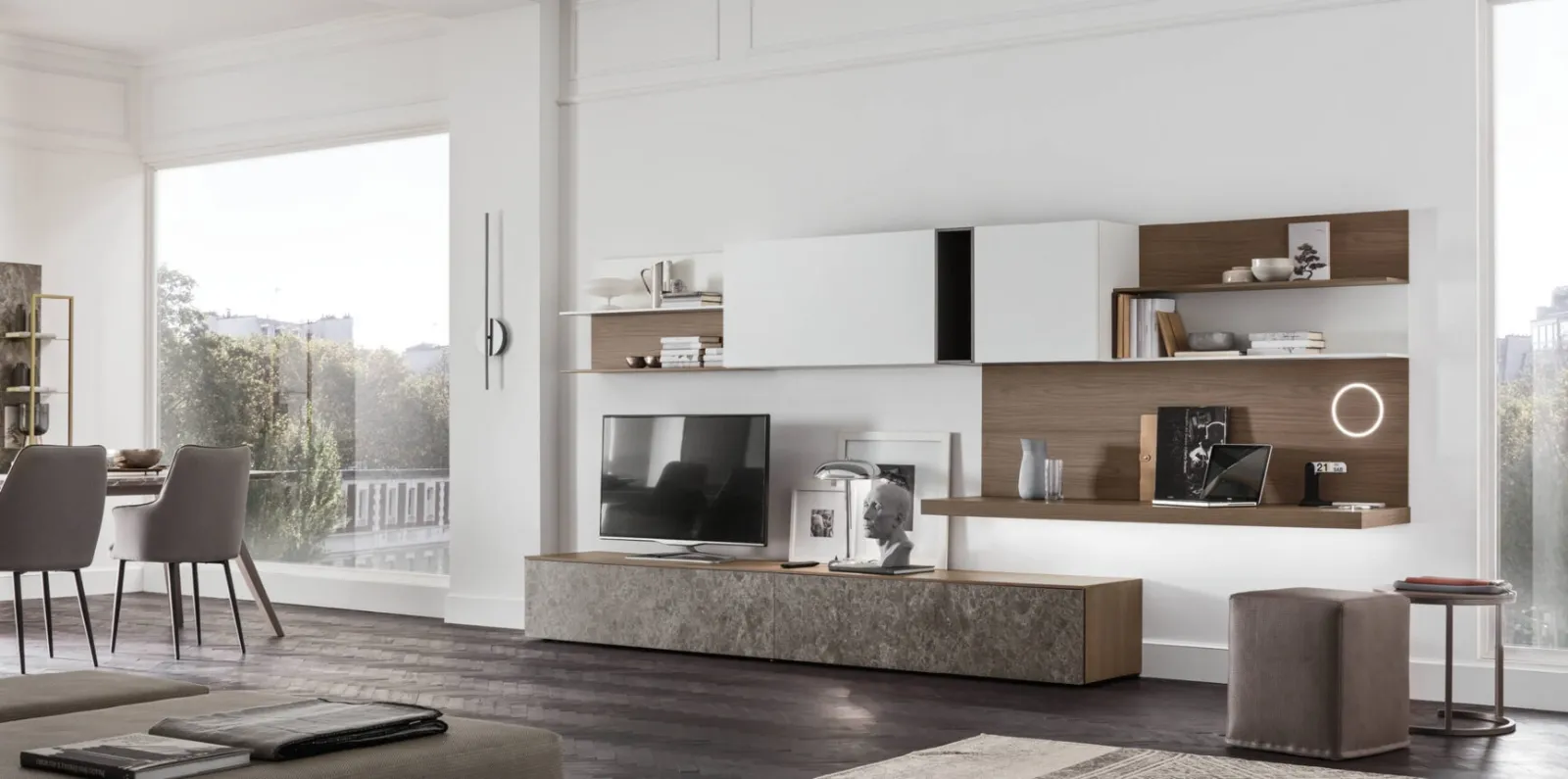 La Parete Attrezzata Seta Comp SA2230 di Maronese nell'immagine è una delle più belle soluzioni d’arredo sul mercato: l'alta componibilità e le diverse opportunità di progettazione la rendono bella e funzionale. Lasciati stuzzicare da una ricca gamma di arredi per la zona giorno e troverai la parete attrezzata che fa per te. Maronese offre a catalogo originali modelli di mobili soggiorno, diversi per stile e conformazioni, finiture e accessori: scopri nel nostro showroom l'Arredamento Casa dei migliori brand. Poiché il soggiorno deve essere uno spazio ben organizzato e bello da vedere, sono molto utili alcuni arredi belli e funzionali come le Pareti Attrezzate.