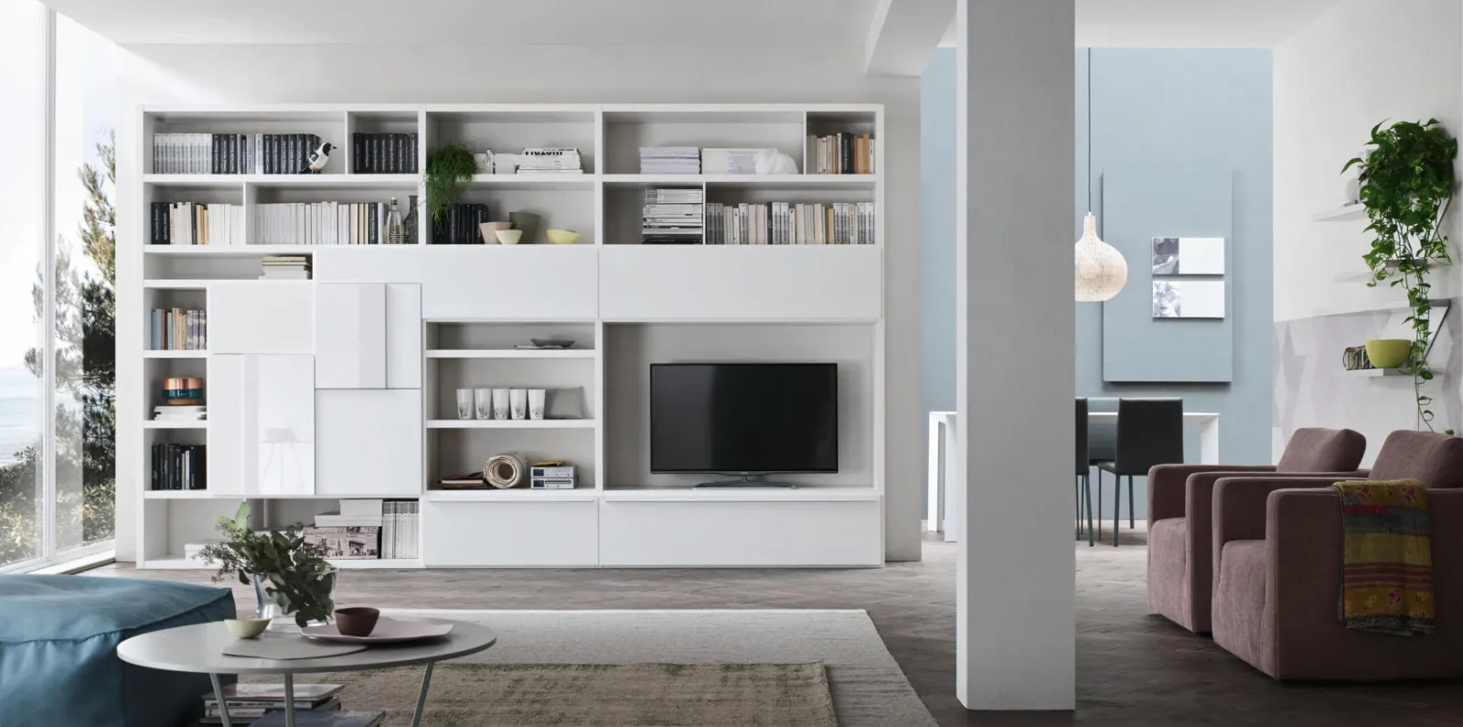 I mobili soggiorno in laccato opaco dalle linee moderne come il modello nella fotografia sono davvero polivalenti e capaci di progettare il soggiorno sfruttando bene ogni angolo. Dato che il soggiorno deve essere uno spazio ben organizzato e bello da vedere, sono molto utili alcuni arredi belli e pratici come le Pareti Attrezzate. Lasciati ispirare da un ricco catalogo di arredi per la zona giorno e troverai la parete attrezzata che fa per te. Maronese produce inediti modelli di mobili soggiorno, diversi per stile e forme, finiture e elementi: scopri nel nostro punto vendita l'Arredamento Casa dei migliori brand.