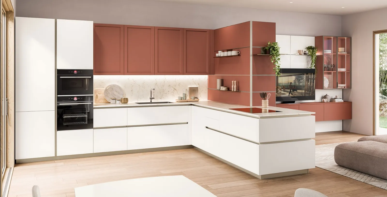 A rendere la Cucina Moderna con penisola Lounge 01 di Veneta Cucine una tra le più belle soluzioni del marchio, oltre ai suoi bellissimi motivi, è il materiale: è realizzata in laccato opaco per garantire comfort e affidabilità nel tempo. Quando scegli una cucina moderna devi dare priorità al modo in cui vivi i tuoi spazi, per completare ottimamente la tua composizione d’arredo. Ti aspettano varie proposte moderne con penisola per la cucina, ideali per chi cerca uno spazio accogliente, pratico e confortevole ma moderno nello stile.