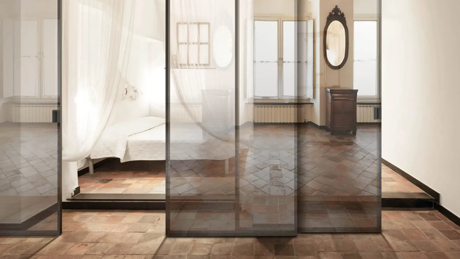 In negozio puoi acquistare le Porte interne ad ante battenti o scorrevoli di Doal, ideali per completare stanze domestiche moderne. Ergonomia e sicurezza caratterizzano tutte le composizioni arredative del brand, tra cui troverai altresì questa Porta per interni Gaia Sospesa di Doal con telaio in alluminio. Questo tipo con ante scorrevoli della firma Doal consente abbinamenti vari, per l'uso di una scelta praticamente infinita di materiali e colori di tendenza. Questi arredi servono per separare i locali interni della tua casa con razionalità e coerenza, senza dimenticare il tuo stile personale e le tue esigenze. Con le nostre Porte interne moderne scorrevoli gestirai gli spazi alla perfezione, assicurandoti la dovuta intimità tra le stanze e una buona resa estetica.